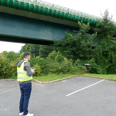 Nous vous proposons des prestations professionnelles de captation d'images aériennes par drone pour des suivis de chantiers, reconnaissance de terrains ou inspections d'ouvrages (immeubles, ponts, routes...).